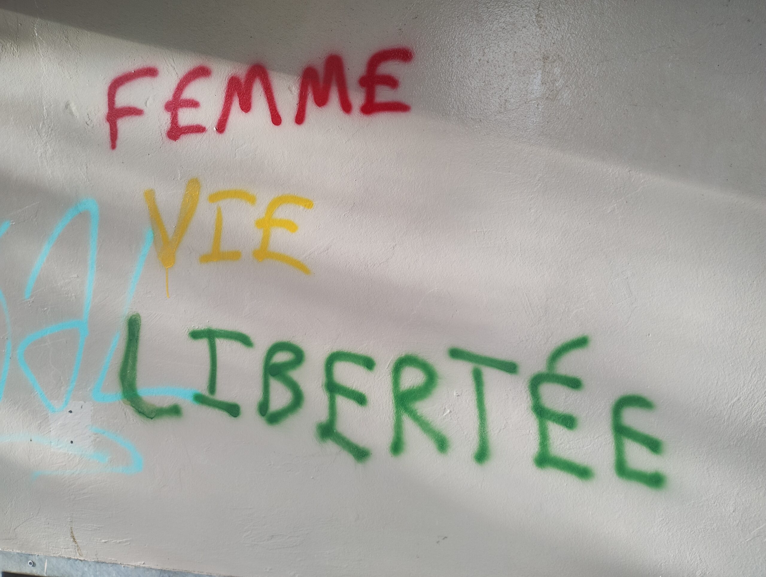 Sur un mur de Saint Leu (Île de la Réunion), je lis ce graffiti : « FEMME, VIE, LIBERTÉE ».