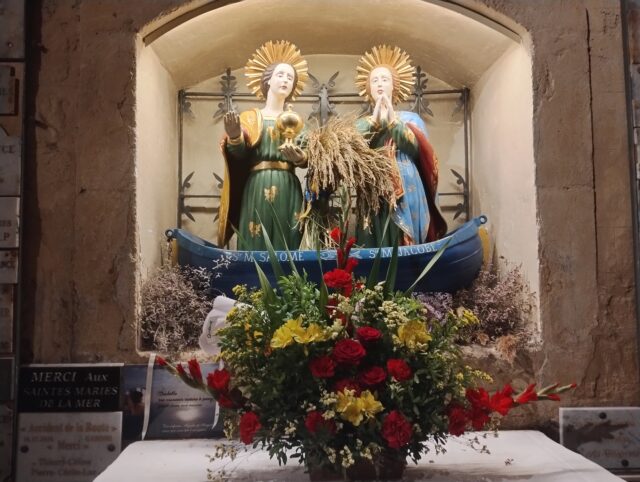 Sara, la servante noire qui accompagnait les trois Marie, est vénérée comme la sainte patronne des gitans Chaque année, à la fin du mois de mai, un pèlerinage attire des foules. La statue de Sara, habituellement honorée dans la crypte de l’église, est portée en procession jusqu’à la mer. L’architecture de cette église, Notre-Dame-de-la-mer, est remarquable. Construite en style roman à partir du onzième siècle, elle a été fortifiée au seizième siècle. Son clocher porte cinq cloches, chacune émettant une note différente.