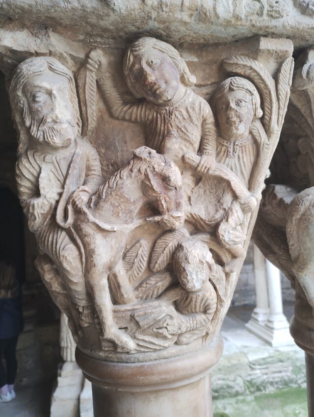 La grande ville de Camargue est Arles. Nous visitons le cloître de l’église Saint Trophime dont nous admirons les chapiteaux exceptionnels qui illustrent des scènes de la Bible. Nous arpentons les rues de la ville et remontons le temps, avec les spectaculaires arènes, construites au premier siècle de notre ère et encore utilisées pour des corridas, des concerts et des pièces de théâtre, puis avec le théâtre antique, construit un siècle avant les arènes.