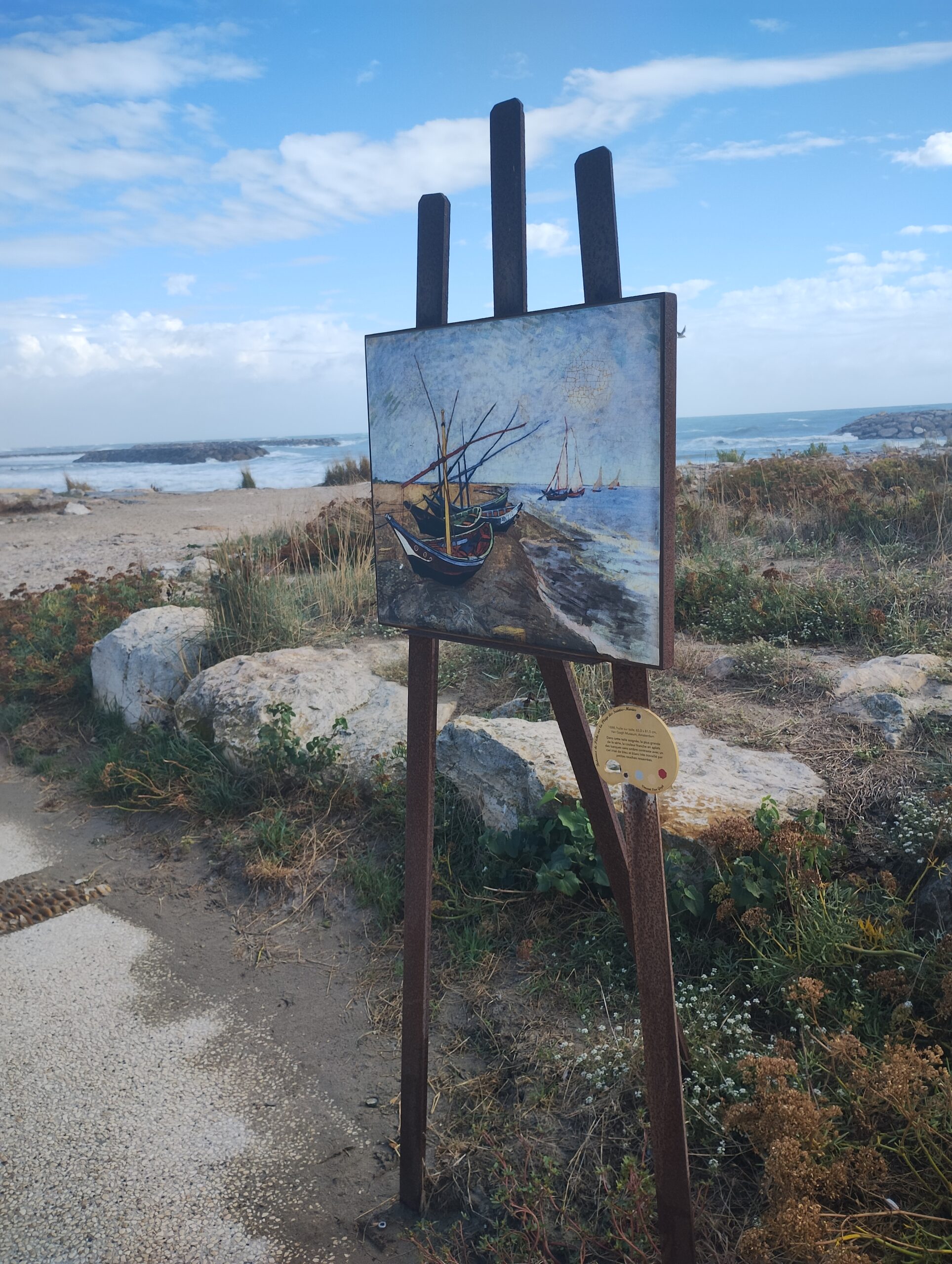 Le front de mer est protégé par une longue digue. Des reproductions de tableaux peints ici par Van Gogh sont installées sur des chevalets en métal face à la mer. Nous sommes frappés par le nombre de restaurants ouverts dimanche, le soir de notre arrivée. Celui que nous choisissons diffuse de la musique tsigane.