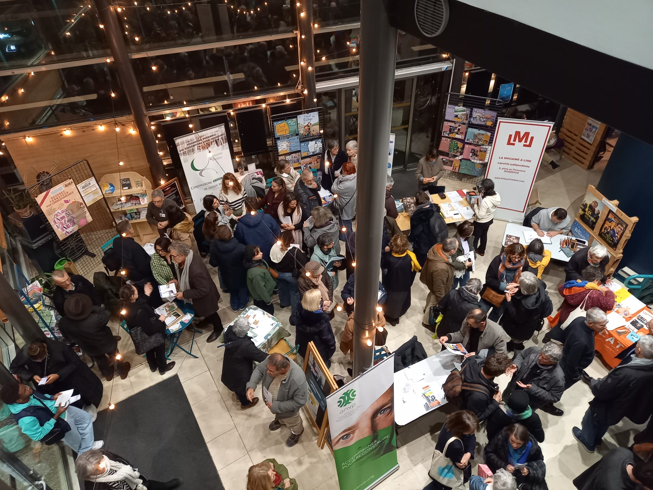 Le festival s’est tenu le 25 novembre au cinéma La Lanterne de Bègles, dans la métropole de Bordeaux. Plusieurs structures membres du groupe local de concertation prison, organisateur du festival, présentaient leurs activités sur des stands dans l’atrium du cinéma.