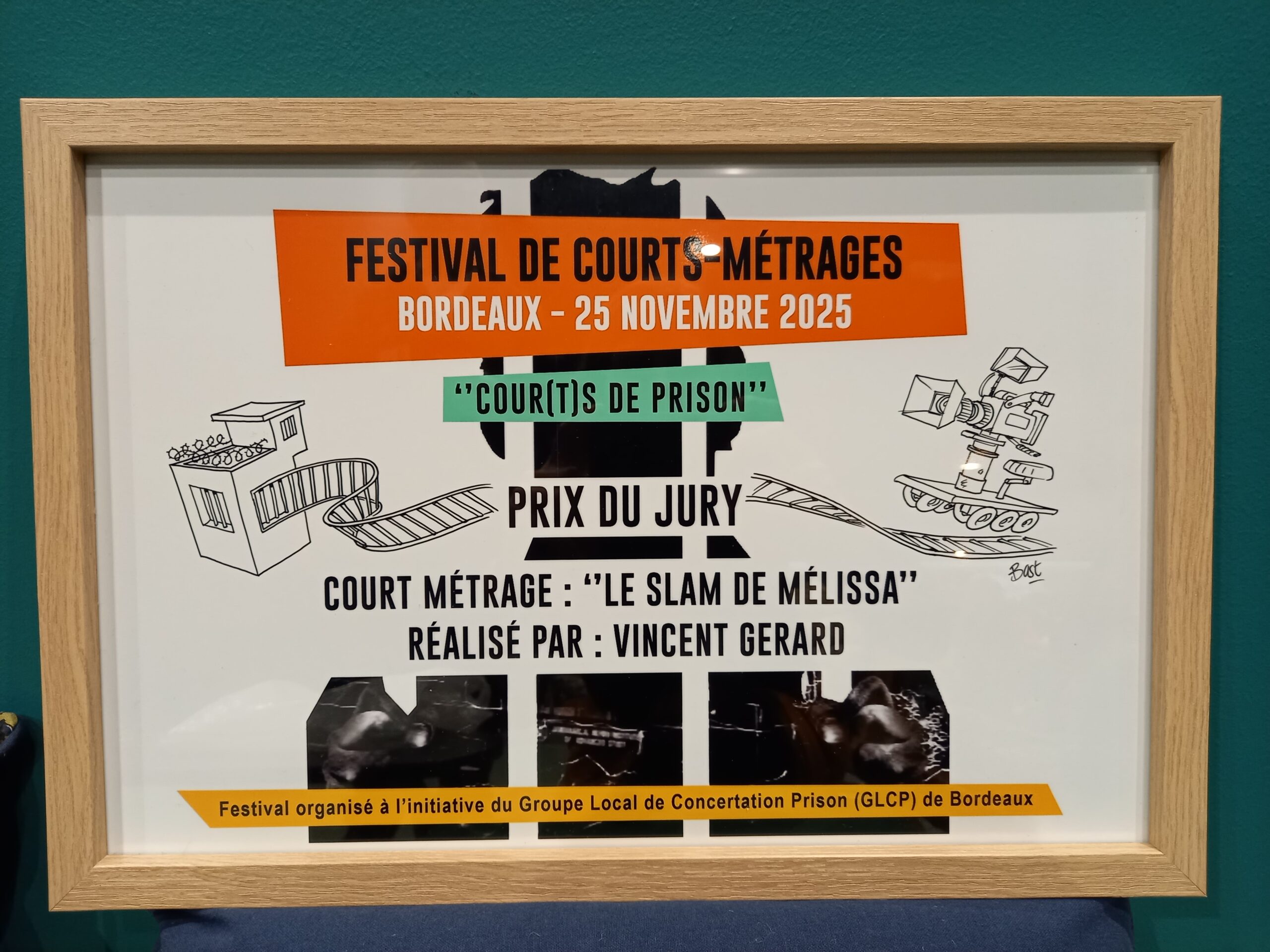 Le jury a attribué le prix du Festival Cour(t)s de prison, doté de 500€ au « Slam de Mélissa » en raison de la pertinence du message porté par le film, son originalité et sa créativité, et sa qualité technique.