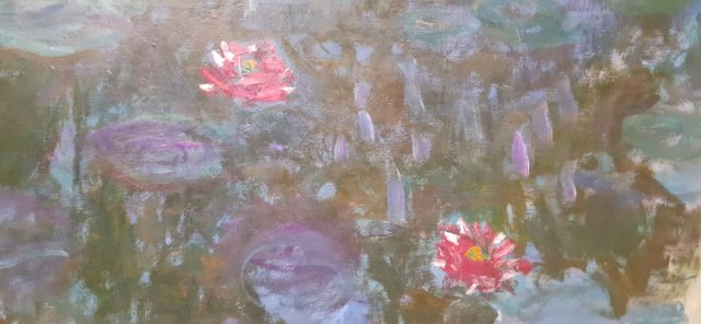 On est toutefois frappé chez Monet par l’anticipation de l’abstraction. Si l’on isole des parties des tableaux de la collection des « nymphéas », le tracé des plantes ne reproduit pas la réalité vue par le peintre, mais va directement à la rencontre de ses émotions.