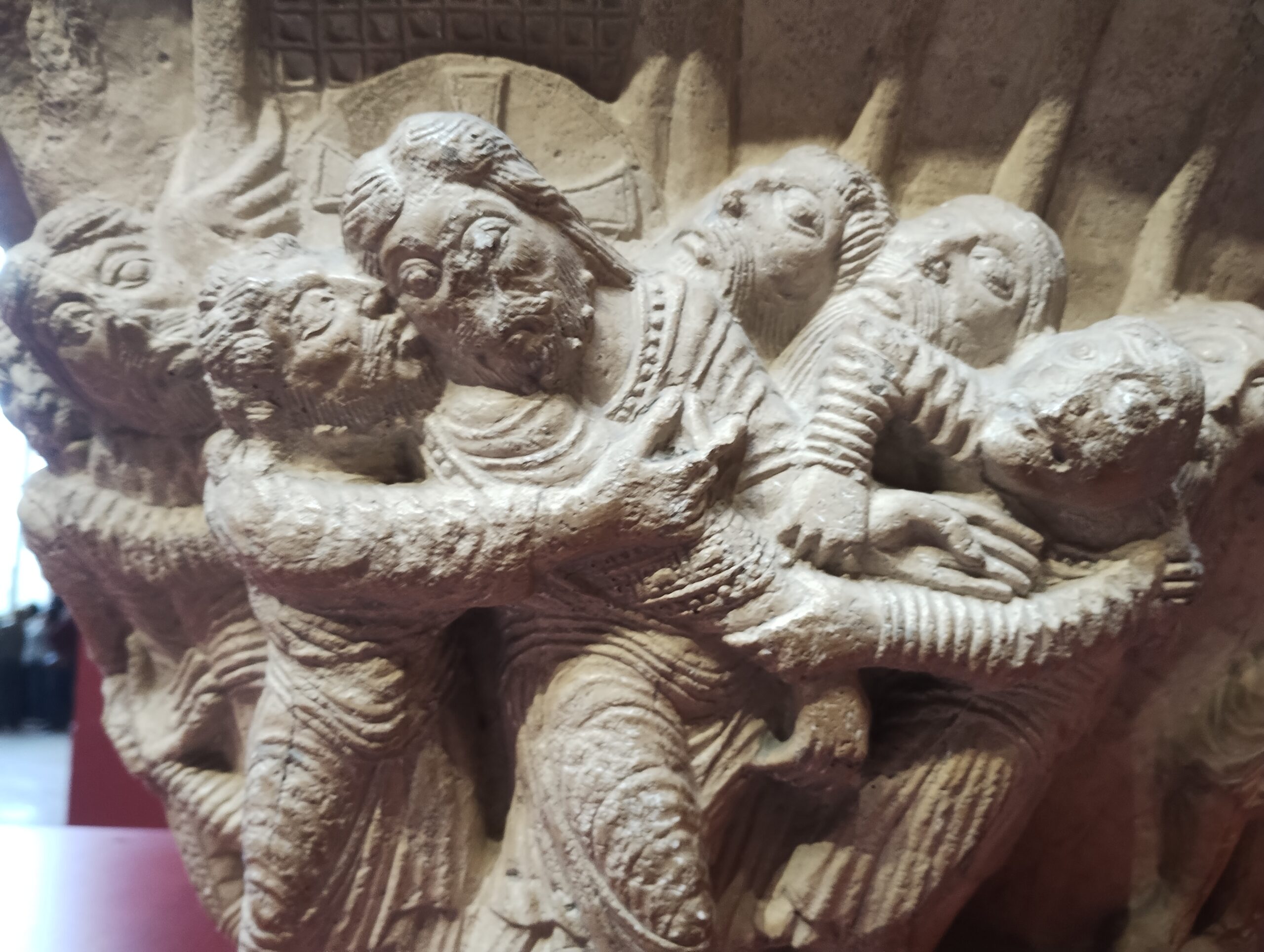 Ce qui rend unique l’exposition des œuvres de cette artiste contemporaine, c’est qu’elle est située au cœur de la galerie des moulages de portails d’édifices médiévaux, de l’époque romane au gothique flamboyant. Le visiteur est émerveillé par « la vie grouillante de toutes parts » sur les portails de Conques, Toulouse ou Moissac.