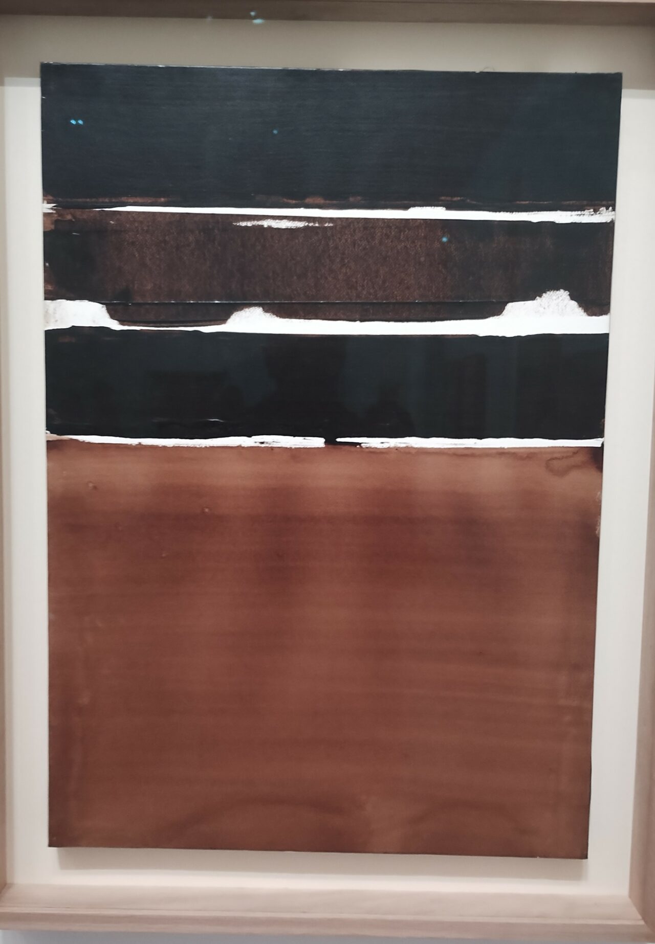 Le visiteur ressent un choc émotionnel qui a probablement à voir avec ce que Pierre Soulages exprimait en 1961 : « si ma peinture ne rencontre pas l’anecdote figurative, elle le doit, je crois, à l’importance qui est donnée au rythme, à ce battement des formes dans l’espace, à cette découpe de l’espace par le temps. »